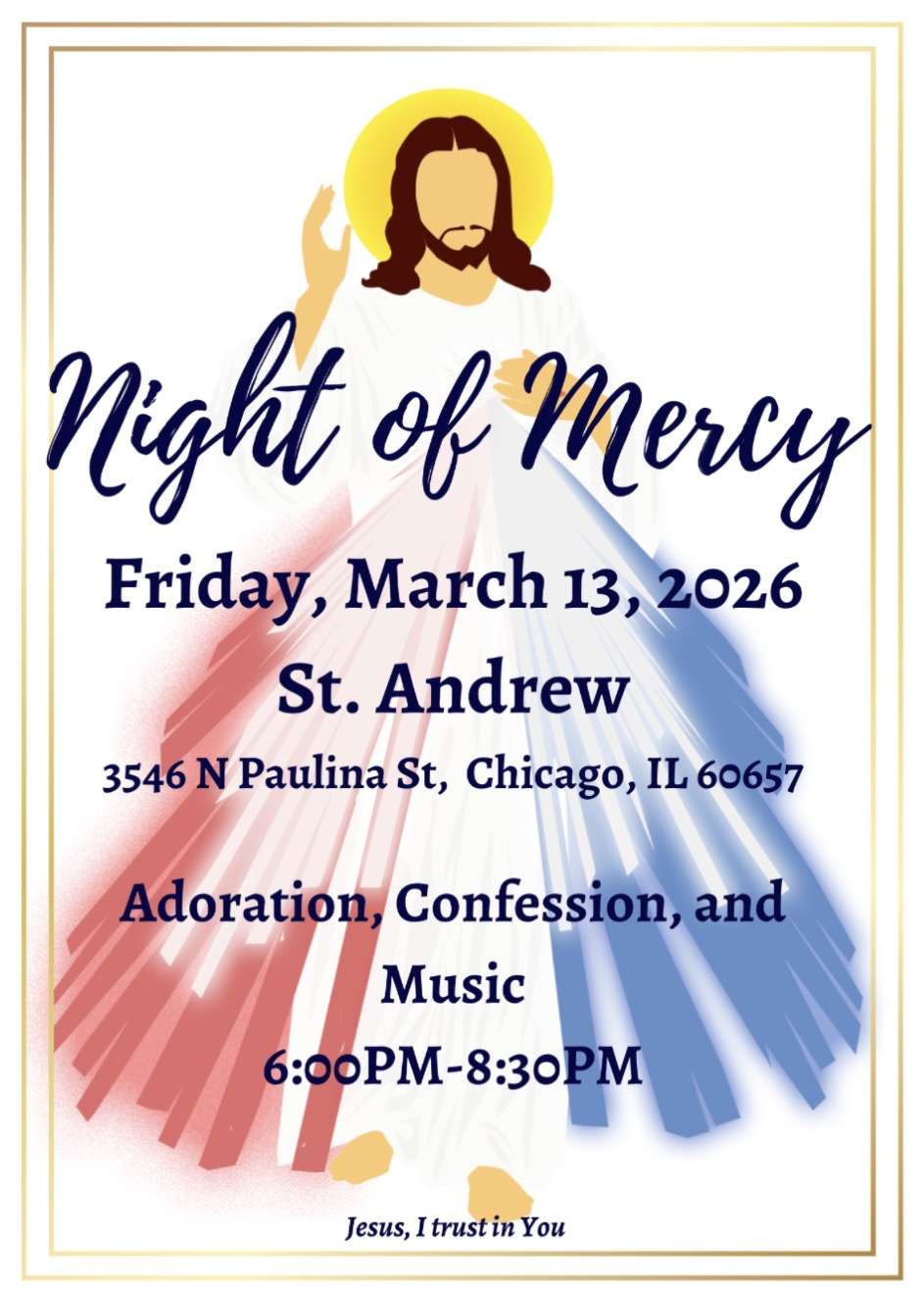 7th grade will have their in-person class on Sunday, March 1, 2026 at 3:30pm-4:45pm as part of their scheduled Religious Education class. They will meet at the auditorium.